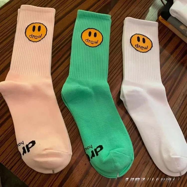 New Drew Smiley Face Socks Justin Bieber's same style men's and women's mid-calf socks-2428